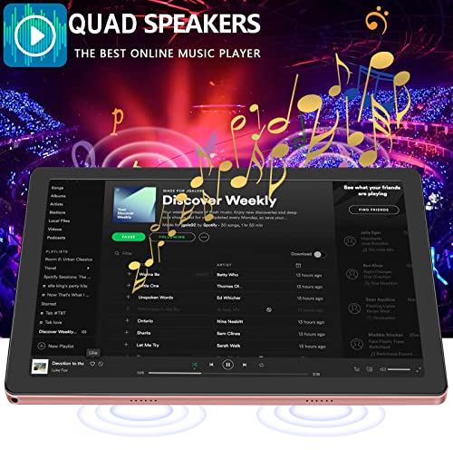 【Slim & Refined Design】 The portable tablet is 1.05 pounds Light weight and 0.9cm thin, also has a 2-in-1 working mode, You can use the Bluetooth function to connect the keyboard, mouse, stylus, With a foldable protective case, You can flexibly turn the tablet into a laptop. The light gold and dark gold combined back design stands out anywhere and also makes a great gift for family and friends.