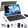 【Slim & Refined Design】 The portable tablet is 1.05 pounds Light weight and 0.9cm thin, also has a 2-in-1 working mode, You can use the Bluetooth function to connect the keyboard, mouse, stylus, With a foldable protective case, You can flexibly turn the tablet into a laptop. The light gray and dark gray combined back design stands out anywhere and also makes a great gift for family and friends.