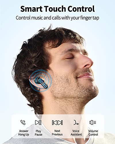 📯【Quick Pairing and Smart Touch】When you take out the earbuds from the charging case, they will automatically turn on and connect to the last paired device. Precise capacitive touch controls, easily skip tracks/change volume/play or pause music/answer or reject calls/wake up the voice assistant with a tap of the earphone, minimizing strain on your ears. Put the earphones back in the charging case and the wireless earphones will turn off and charge. Simple to use, suitable for all ages.