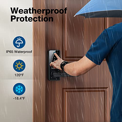 Fingerprint Door Lock, 6-in-1 Keyless Entry Door Lock with Handle, Touchscreen Keypad, Bluetooth APP, Auto Lock, IP65…