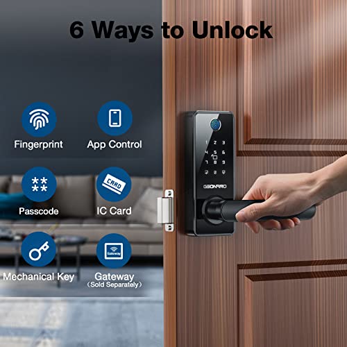 [6-in-1 Smart Keyless Entry Door Lock] Do you fish around your keys again? Our smart door lock enables you 6 ways to unlock doors keyless, including fingerprint, APP control, IC card, passcode, mechanical key, and gateway (sold separately). Our smart door lock can unlock in 0.5s, versatile for hotels, apartments, and homes. Our keypad door lock even allows remote access, so you can unlock the door to let in your friends while you’re away. With our smart lock, you can leave your keys behind.