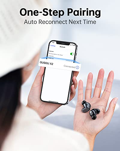 【* Premium Sound Quality *】: GUSGU X2 Wireless Earbuds adopt industry-leading Audio Equalizer and 10mm large-sized dynamic speakers, to fine-tune music details for deeper bass, clearer mid and treble. Enjoy this gorgeous immersive sound!