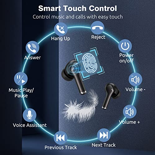 🎵【Auto Quick Pairing & Simple Touch Control】When you take out our wireless headphones from the charging case, they will automatically turn on & connect to the previously paired device. Features with touch control sensors, bluetooth headphones allows you to conveniently power on/off, play/pause, answer/hang up, adjust volume and access other functions at the touch of a button.