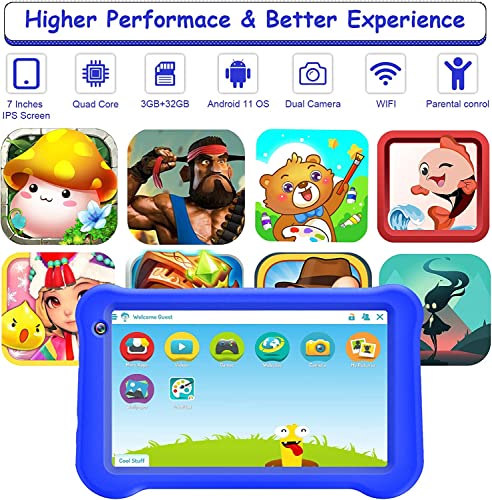 Kids Tablet, 7 Inch Android 11 Tablet for Kids, 32GB ROM 3GB RAM IPS Display Parental Control Dual Camera Toddler Tablet…