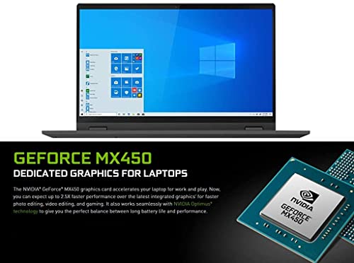 【Think Bigger, See Bigger with 4K UHD Display】15.6″ 4K HDR (3840×2160) IPS 500nits HDR 400, 2-in-1 Touch Display. Bring pro-grade workflow to your hustle. Lenovo Flex’s newest lineup features a 15.6-inch display for our most immersive experience yet. The large IPS display delivers 4K HDR (3840×2160) resolution for clear, vivid color expression. With NVIDIA GeForce MX450 2GB GDDR6 Graphics.