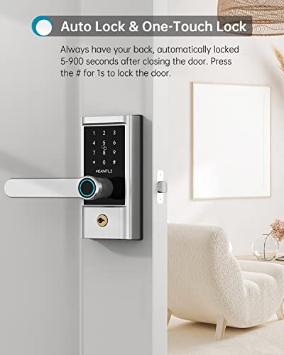 Smart Lock, HEANTLE Keyless Entry Door Locks Fingerprint Bluetooth Electronic Lever Touchscreen Keypad Deadbolt…