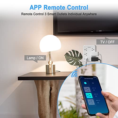 Smart Outlet Plug Extender, TESSAN Smart Power Strip with 6 Multi Outlet 3 USB, WiFi Wall Surge Protector with 3 Remote…
