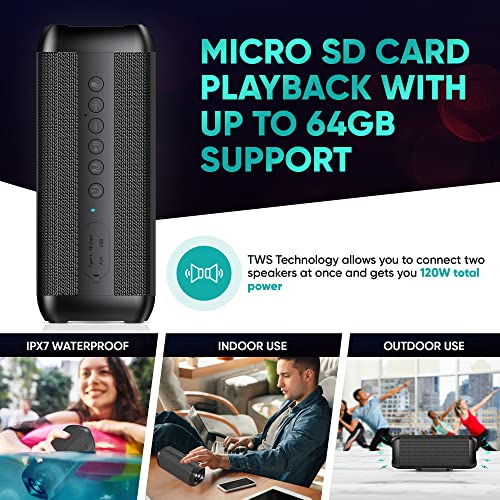 【DUAL PAIRING 60W SPEAKERS】 Double your output with the dual pairing feature on our portable device. Each unit gives a total output of 60W, but you can pair two units at once with our TWS technology to double your sound potential.