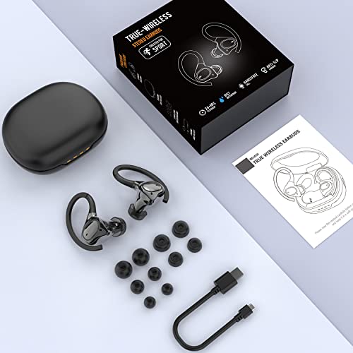 True Wireless Bluetooth Headphones with Over Ear Hooks for Jogging, IPX7 Waterproof Workout Earphones, Built in Mic…