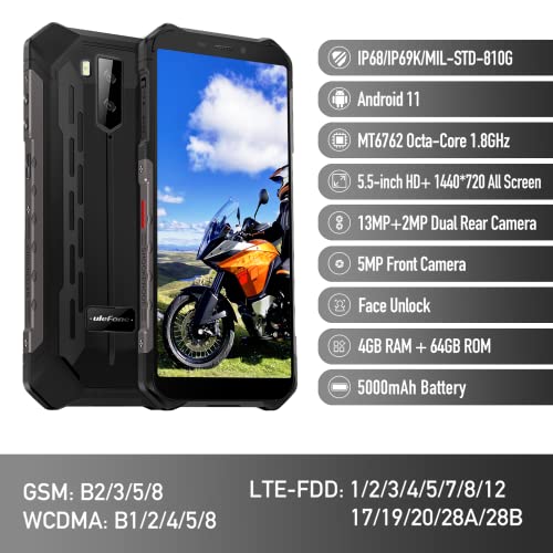 Ulefone Armor X9 Pro Rugged Smartphone, 4GB+64GB Unlocked Cell Phones, 13MP +5MP+2MP, 5.5 inch Screen, Android 11 Helio…