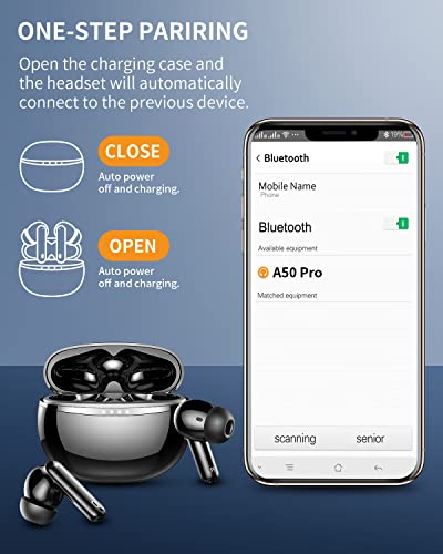 4 Microphone Design : A noise-cancelling microphone is added to the top of the wireless earphone. When external sound waves of different frequencies enter, it will automatically recognize and use the noise-cancelling chip to reverse the noise to optimize the sound quality of the bluetooth headphones and the call experience. In addition, CVC8.0 enables the microphone to reduce noise in high winds, making calls more realistic.