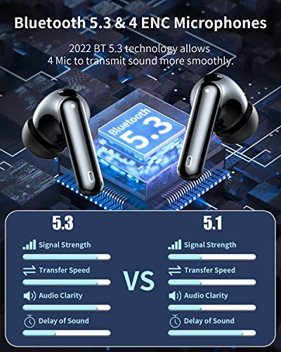 Bluetooth 5.3 : The ear buds bluetooth has a built-in 2022 Bluetooth V5.3 chip, which has three times the connection speed and a more stable frequency band than the V5.1 version, and only half of the power consumption, which can better play the advantages of the buds.