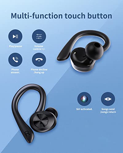 【IPX7 Waterproof】Equipped with IPX7 water resistance, the EUQQ sports wireless earbuds can easily withstand sweat and rain. It protects the earbuds from heavy rain or sweat throughout your workout. The EUQQ waterproof headphones will be an ideal companion during jogging, running, yoga, sports, fitness, cycling and other activities.