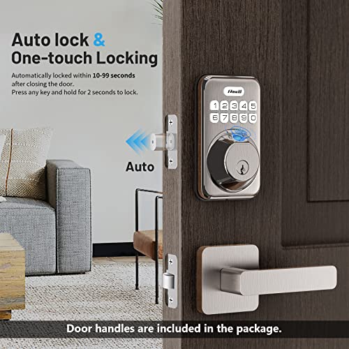 【Auto-Lock & One-touch Lock】: Always forget to lock the door? This keypad deadbolt enables automatic locking for peace of mind, it automatically locks within 10-99 seconds of door closing, or instantly locks your door by pressing and holding any button for 2 seconds when going out.