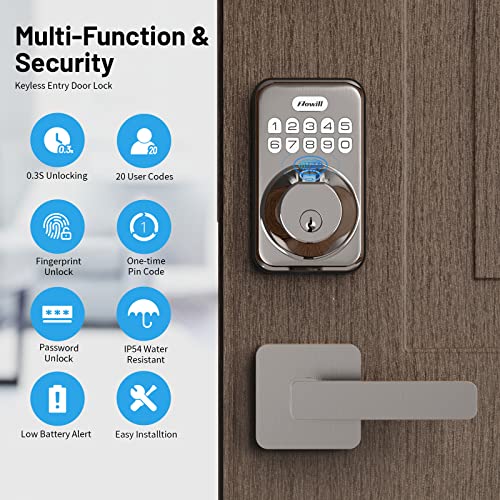 【Biometric Fingerprint】: Zowill keyless entry door lock with handle use latest fingerprint technology helps the recognition rate up to 99%. And your door can be unlocked within 1 second.
