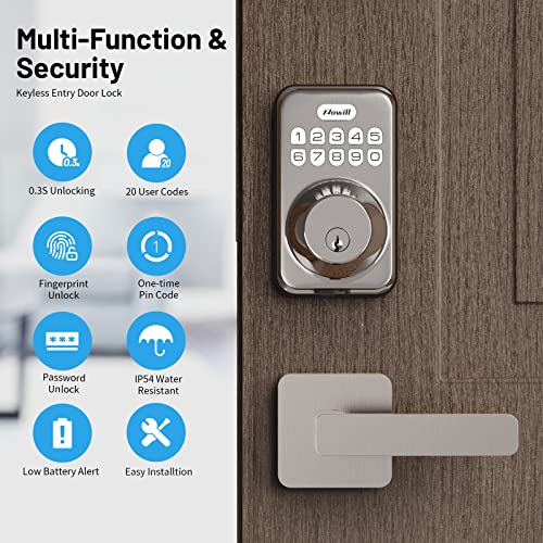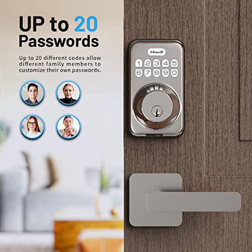 Keypad Code: Zowill smart lock with handle supports multiple ways to access: 20 user codes, one- time code, 2 backup keys. Provide different unlock methods for family, friends and temporary visitors.
