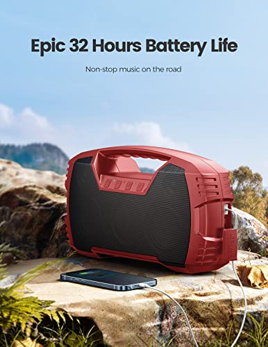 Epic 32-Hour Playtime- Houl Zallee outdoor Bluetooth speaker delivers up to 32 hours of playtime on a single charge (Actual playtime may vary by the music content and sound volume). Enjoy loud sound with powerful bass and clear vocals at home, in the garage, or outside on the road. Its built-in large-capacity rechargeable batteries can also be used as a power bank to charge phones or other devices, making it a great camping gift