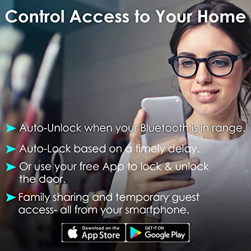 [Free App: Auto-Unlock & Lock with Remote Access]: Free App with no monthly fees, Auto-Unlock & Lock (Android phones and iPhones), Remotely unlock & lock through App. Unlock automatically when your Bluetooth is in range(when you approach your home/door). Auto lock based on a time delay. Note: Only compatible with 2.4GHz WiFi, DO NOT compatible with 5GHz WiFi signal